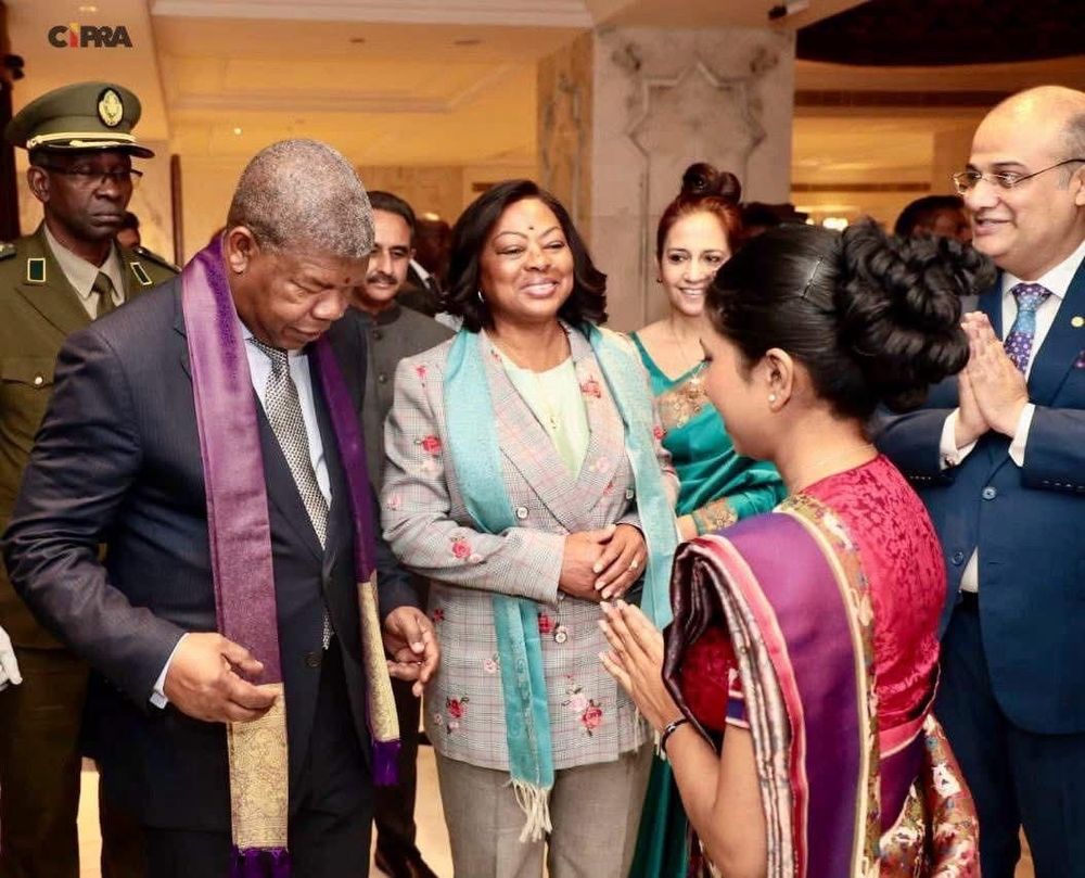 À chegada ao local que servirá de residência oficial do Presidente da República e delegação, João Lourenço e Ana Dias Lourenço foram acolhidos com a tradicional hospitalidade indiana, em que se incluíram cânticos, a conhecida pintura na testa e flores frescas para a Primeira Dama da República.