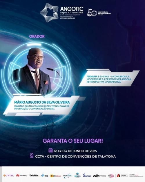 Ministro das Telecomunicações, Tecnologias de Informação e Comunicação Social será orador na sessão inaugural do ANGOTIC – Angola ICT Forum 2025.O Ministro das Telecomunicações, Tecnologias de Informação e Comunicação Social, Eng.º Mário Augusto da Silva Oliveira, será orador na sessão plenária inaugural do ANGOTIC – Angola ICT Forum 2025, com o tema:Plenária 01:“50 anos – A Comunicar, a Modernizar e a Desenvolver Angola: Retrospectiva e Perspectiva”Com uma carreira sólida no sector das telecomunicações e com mais de 30 anos de experiência em funções técnicas, operacionais e de liderança em instituições de referência como a MSTelecom, NEXUS e Sonair, o Ministro Mário Oliveira trará uma visão estratégica sobre a evolução do sector das TIC em Angola, os principais marcos alcançados e os caminhos futuros para um desenvolvimento tecnológico inclusivo, soberano e sustentável.A sua intervenção marcará o início de três dias de reflexão, partilha de conhecimento e promoção da inovação no maior fórum tecnológico do país.De 12 a 14 de Junho de 2025Centro de Convenções de Talatona – LuandaSaiba mais em: www.angotic.ao